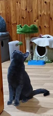 She absolutely loves interactive play and needs someone who is going to have quite a bit of time to spend playing with her. Cat tunnels are one of her favourite things and she enjoys chasing balls and dangly toys, running from room to room and playing games with her humans, which helps keep her fit and happy.