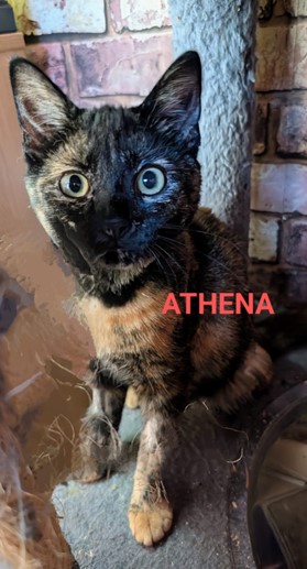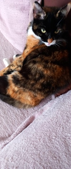 “Athena is a beautiful girl with a big heart. Loves a fuss ( being a tortie, it's on her terms), but generally very soft natured and enjoys the company of the other cats.”