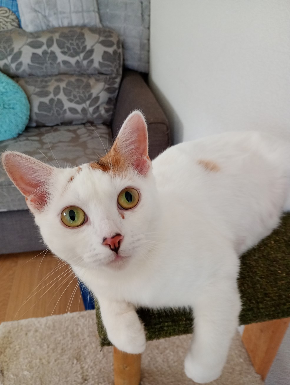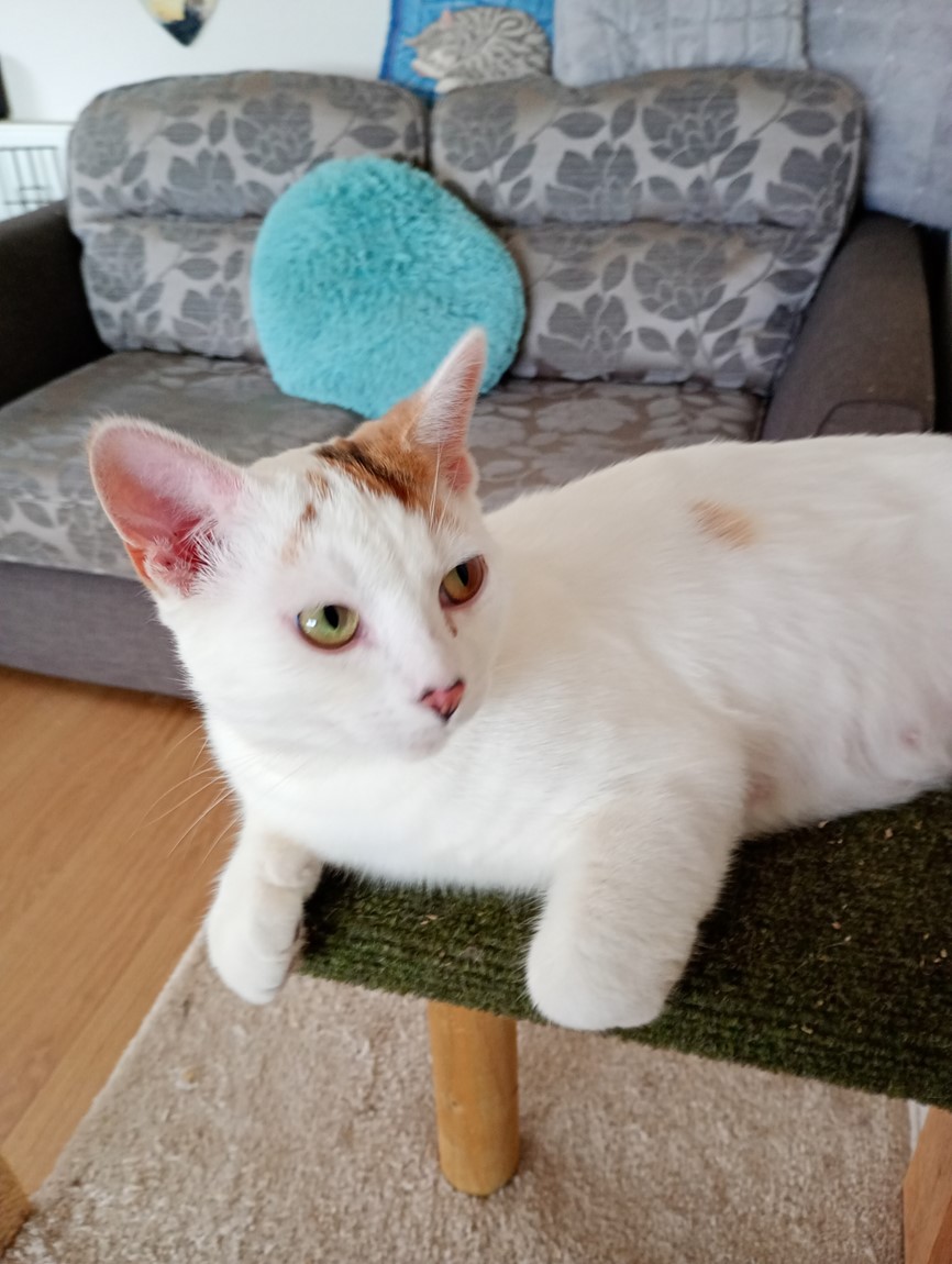 Snowy is a lovely cat who loves to play and run around. She is loving but not yet a lapcat but does enjoy human company and fuss.